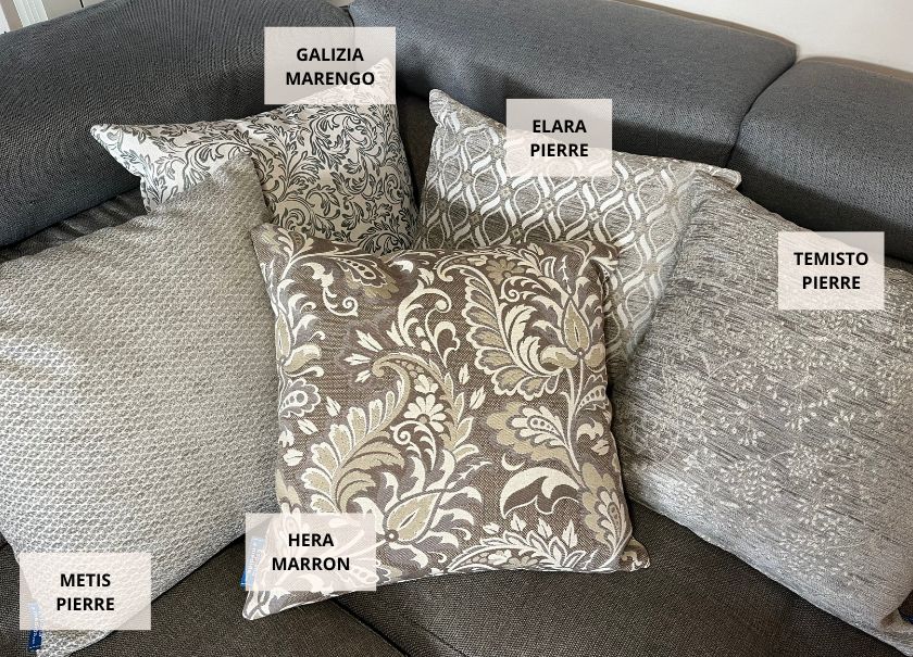 Des motifs floraux et des jacquards dans des tons terre, ocre et bordeaux se marient harmonieusement avec des unis et semi-unis, créant des espaces sophistiqués et accueillants.